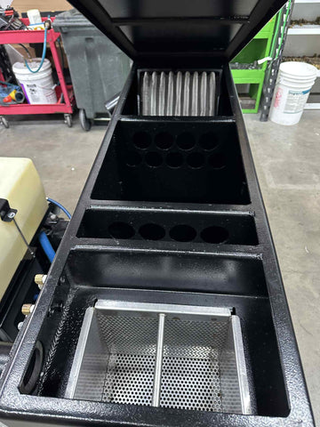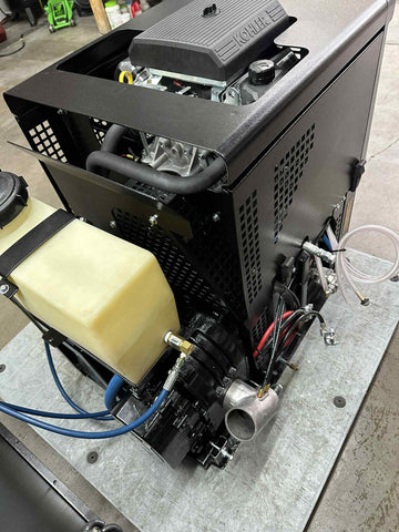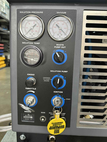 - Engine: Kohler Command 0.67 L gasoline engine with oil coolerDisplacement Blower: Gardner Denver 4MVL positive displacement blowerSolution pump: General water pump producing up to 1200 PSI and 3.5 GPMConsole dimensions (W × H × D): 32 × 33 × 39.5 in. | 81 × 83.8 × 100 cm